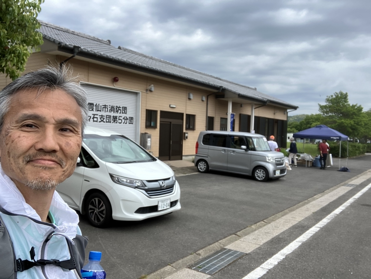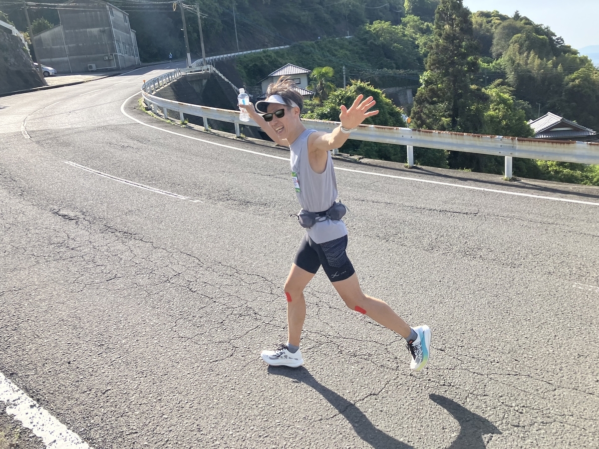 ここで、横のランナーさんと話しをしていると、なんと昨年、最終関門の千々石の先の坂の上で足が攣ってDNFしていた方だった!なんという偶然。今年は、ぜひ頑張りましょう、とエールを交換。